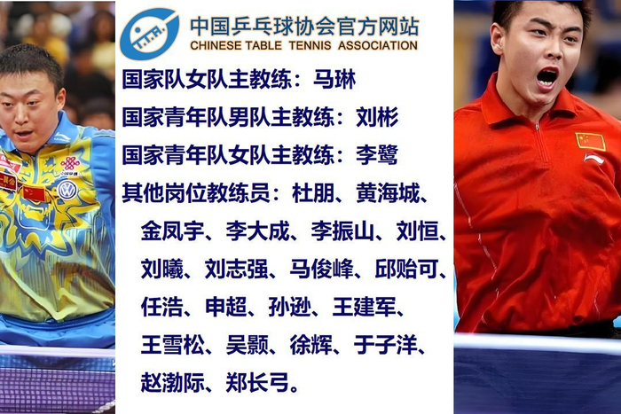 国家队男队主教练:王皓;女队主教练:马琳。